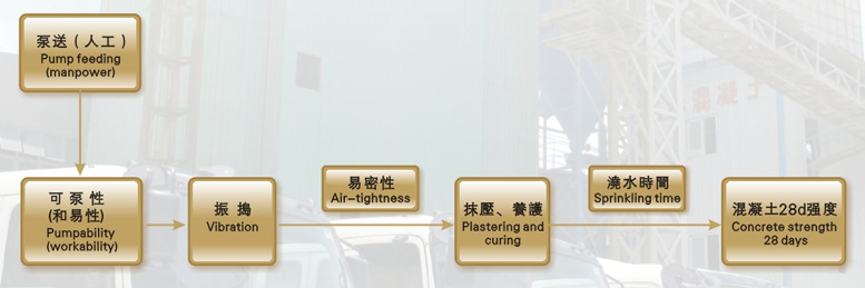 預(yù)拌混凝土是一種特殊的商品,從混凝土攪拌合格出廠經(jīng)過運(yùn)輸、泵送到澆筑部位,除需要提供合格的混凝土拌合物外,還需要施工單位的振搗、養(yǎng)護(hù)才能完成。按照施工單位需要的各種性能的混凝土生產(chǎn)后,仍需供應(yīng)單位的跟蹤服務(wù),按照不同施工部位及重要工程部位,如梁板、柱、墻以及大體積混凝土、道路混凝土、水下樁混凝土等特種混凝土,提供混凝土施工技術(shù)交底說明(配有技術(shù)資料),并派出工程師(技術(shù)員)進(jìn)行現(xiàn)場跟蹤服務(wù)和對特殊情況下出現(xiàn)的問題處理